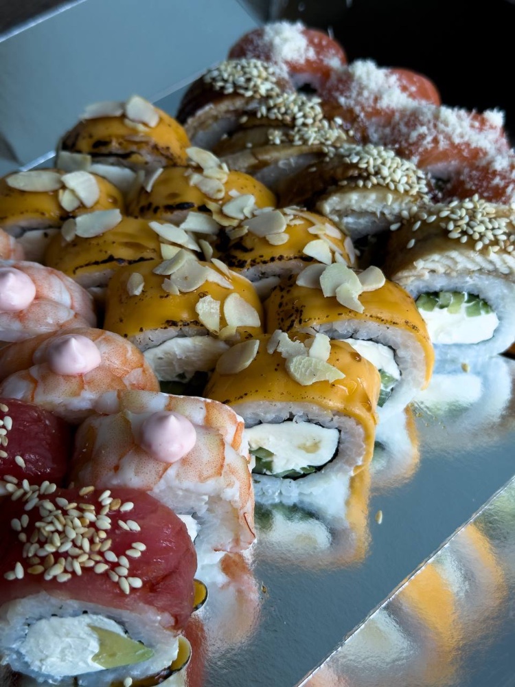 Каліфорнія з тунцем в кунжуті Філадельфія з лососем обпалена Футомакі з печеним лососем Темпура рол з вугрем